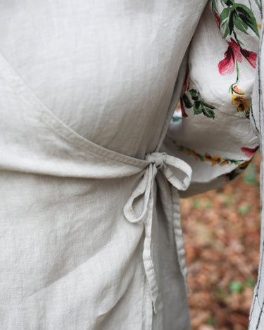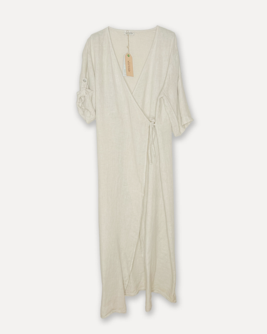 Linen wrap attitude dress, Beige