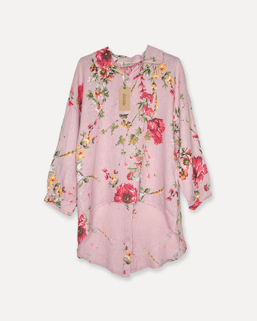 Daisy Attitude Flowery Linen Blouse, Pink