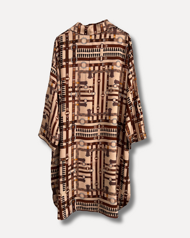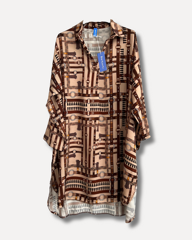 Denna klänning har en avslappnad och elegant look som passar utmärkt för både vardag och fest. Materialet är behagligt att ha på sig och ger en naturlig känsla. De unika detaljerna med läderband och tofsar ger klänningen en speciell och unik touch.